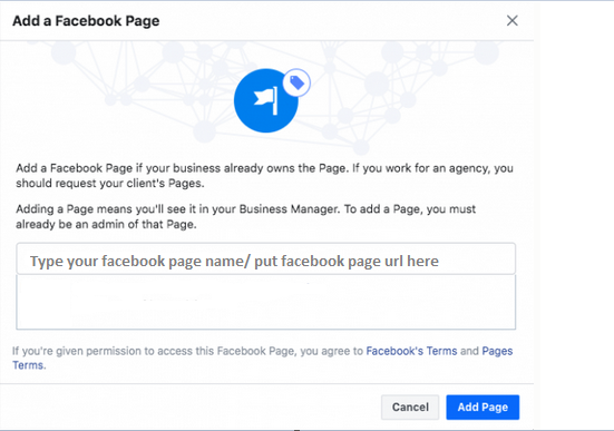 3. Type your Facebook Page name/Put Facebook Page URL in the area as shown below in the snap. Then click Add Page.